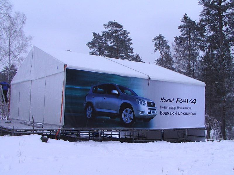 в лесу для презентации новой Тойоты Rav был оборудован гостевой павильон М10 (100 м.кв) с обогревом...