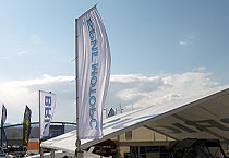 Для дополнительного обозначения и придания индивидуальности каркасно-тентовое сооружение может быть оснащено флагштоками. Изготовление флагов оговаривается отдельно. Монтаж флагштока производится непосредственно на само сооружение.  Высота - 6 м. Дополнительно оснащается самоориентирующимся  "гусиком" флюгерного типа.