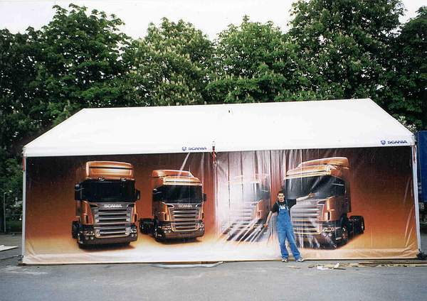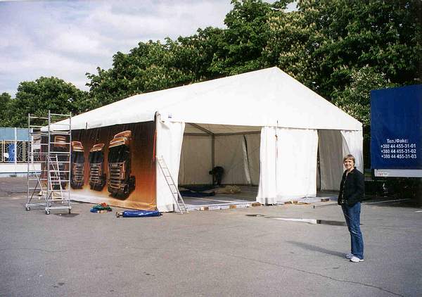 г. Киев, ВДНХ, SIA 2004, для SCANIA установлен павильон М10 (100 м.кв.) брендирован и с полноцветной печатью.
