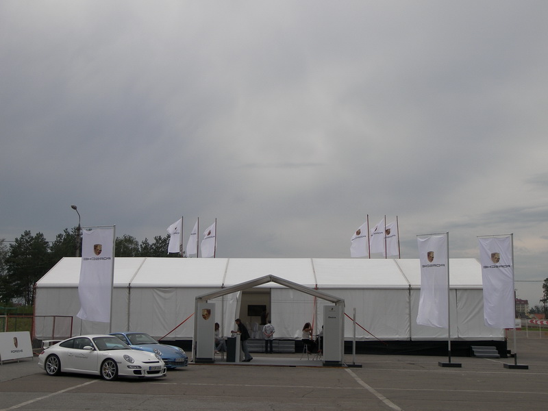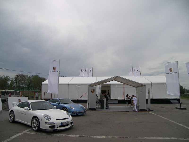 на автодроме "Чайка" для акции "Porsche World Road show" был оборудован "городок", с участием павильонов М10 (около 250 м.кв), М6 (около 64 м.кв) и 3 шт. Р4.16.